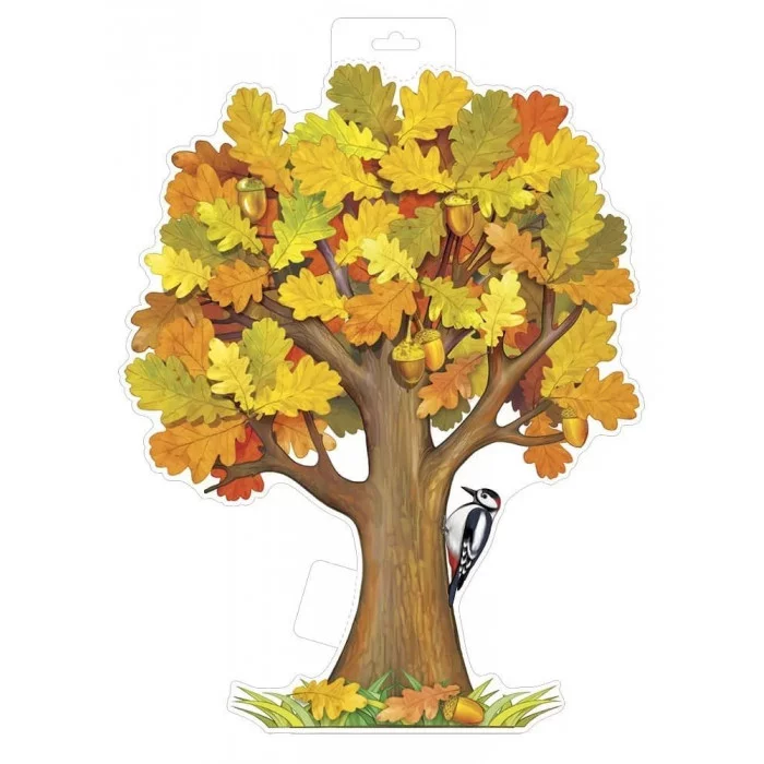 Вырубной двусторонний плакат-дерево "Дуб" для оформления помещений в школах и детских садах. Может использоваться в качестве настенного украшения, декорации к выступлению или для проведения уроков.