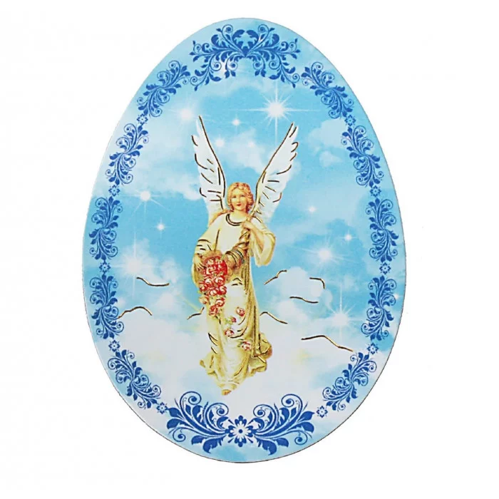 Магнит пасхальный "Парящий ангел" изготовлен из прочной полимерной бумаги с нанесением яркой картинки и золотистым тиснением. Форма яйца (символа новой жизни) и оригинальное изображение парящего ангела, олицетворяющего чистоту, невинность и духовность, делают этот сувенир прекрасным элементом вашего интерьера. Он создаст светлую пасхальную атмосферу во всём доме и наполнит сердце радостью.В столь благостный праздник наградите вниманием каждого, подарив праздничный сувенир родным и близким, родственникам и друзьям, коллегам по работе.