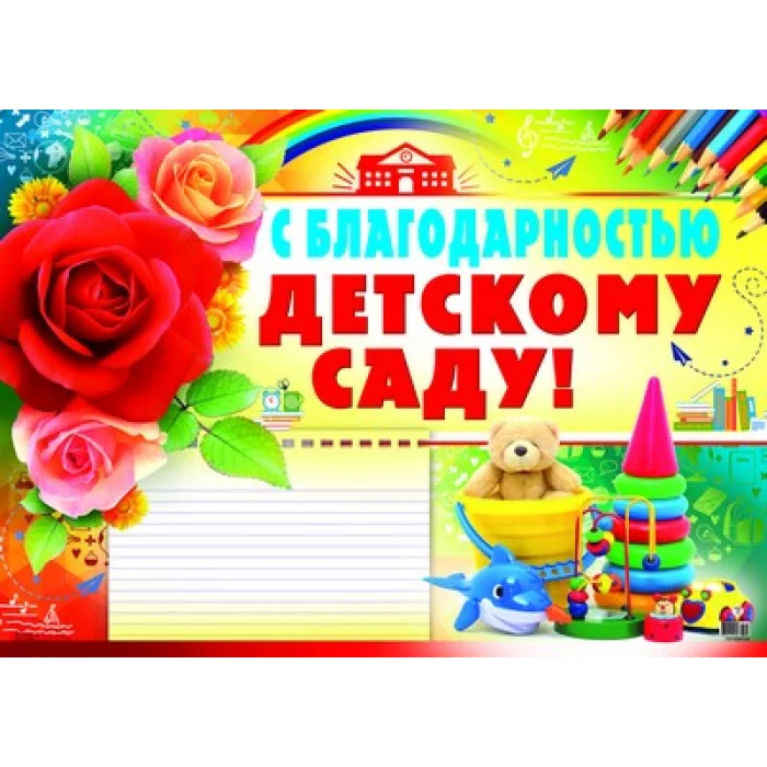 Плакат А2. С благодарностью детскому саду, 460709144037908704 ПЛ-8704 00-00005248