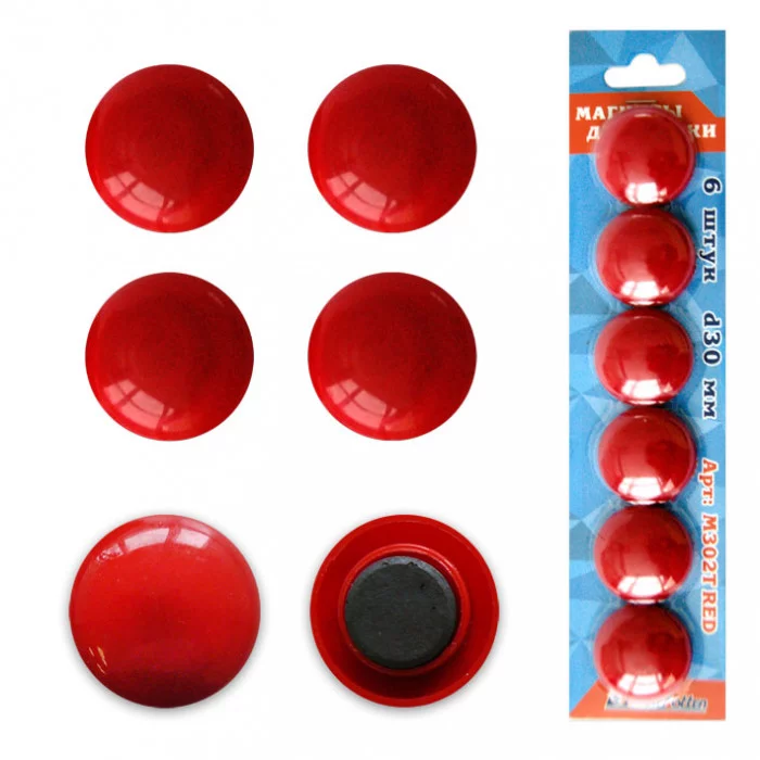 Магнит для доски 302Т Красный d=30мм 6шт J.Otten 41537 Дск155