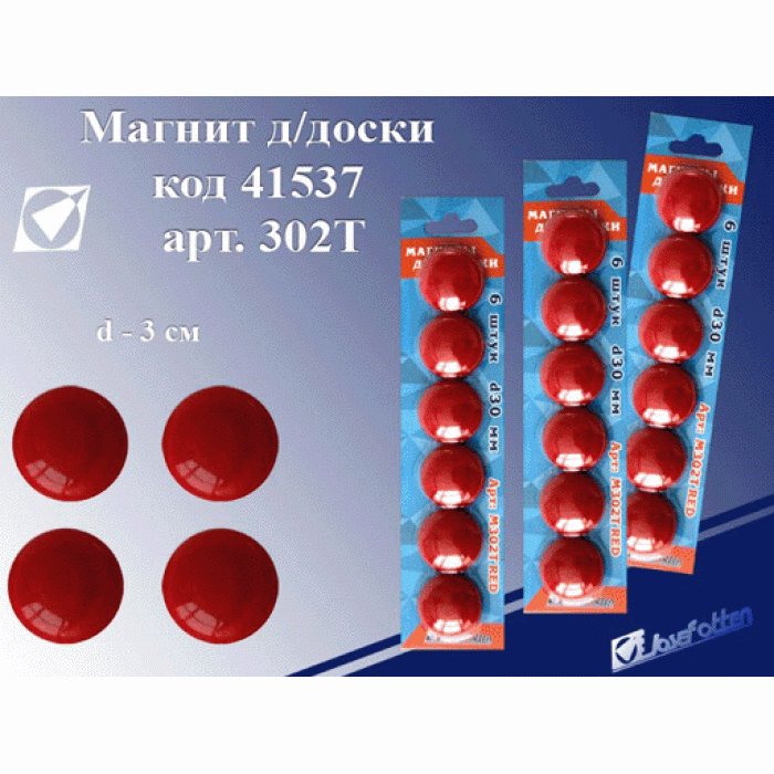 Магнит д/доски 302Т Красный d=30мм 6шт/блистер J.Otten 41537