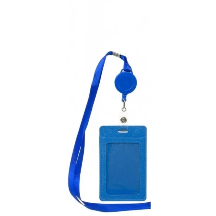 Бейдж для пропусков, проездных: 1шт кожзам, со шнурком и рулеткой МС-6301