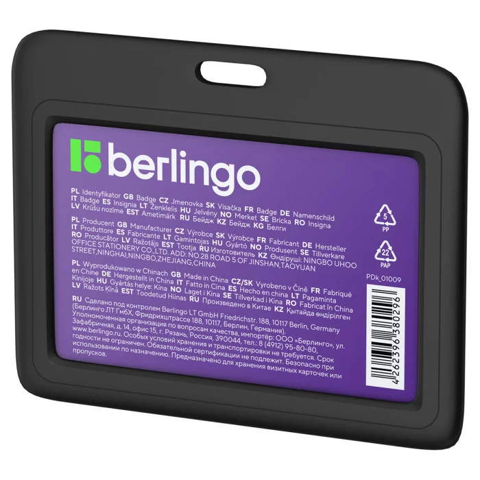 Горизонтальный бейдж Berlingo серии ID 200 выполнен из прочного ABS пластика, поэтому не помнется в кармане или в сумке. Оснащен удобной крышкой-слайдером. Размер изделия черного цвета – 78*98. Внутри бейджа находится бумажный вкладыш размером 55*85 мм, на лицевой стороне которого указана выходная информация о товаре и шк/артикул для продажи, а оборотная сторона вкладыша подготовлена под персонализацию. Подходит для хранения пропуска, визитной карточки или проездного билета. Поставляется без держателя в комплекте. Идеально сочетается с любым лентами или держателями для бейджей Berlingo. Каждый бейдж упакован в индивидуальный пакет для защиты от пыли и грязи. Цвет: черный; Ориентация: горизонтальная; Материал бейджа: ABS пластик.
