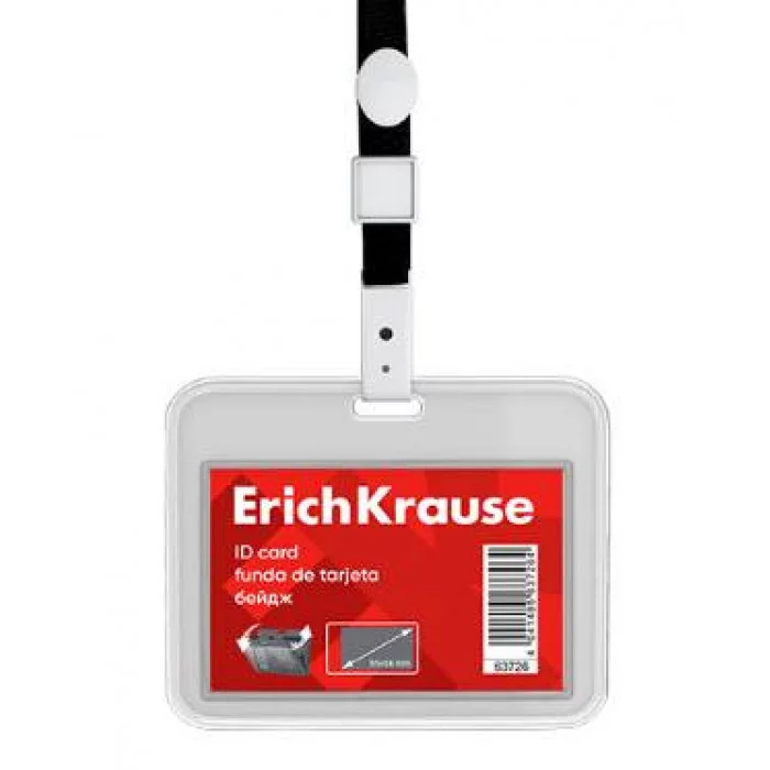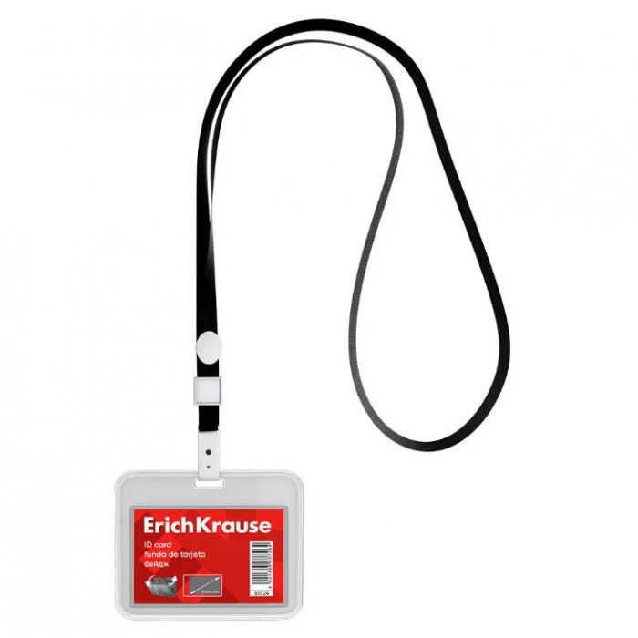 Бейдж горизонтальный в комплекте с лентой ErichKrause книжка, размер вставки 85х54 мм, прозрачный, цвет ленты черный 63726