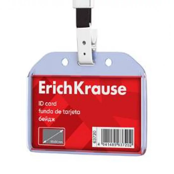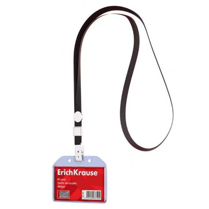 Бейдж горизонтальный в комплекте с лентой ErichKrause размер вставки 85х54 мм, прозрачный, цвет ленты черный 63720