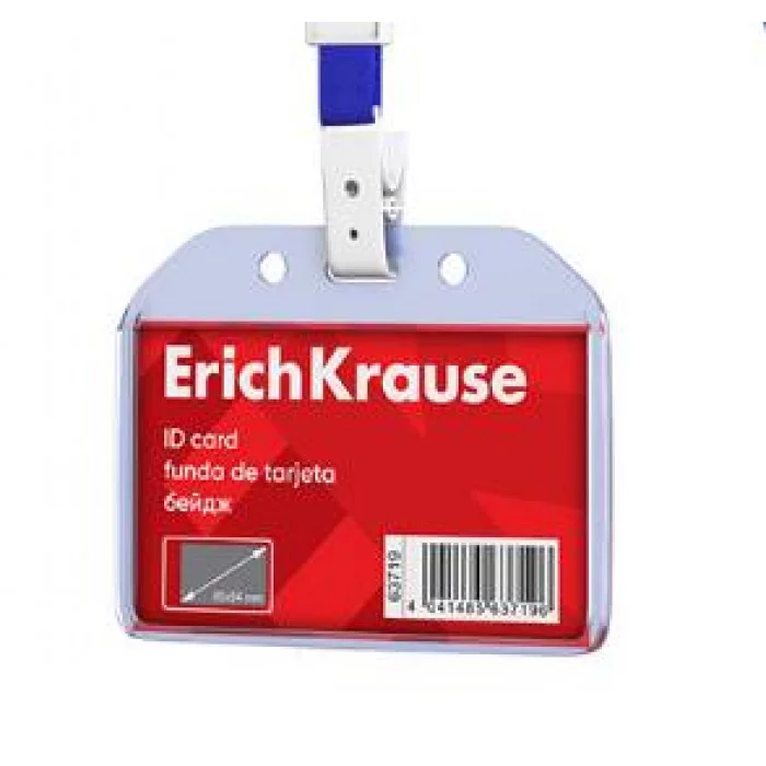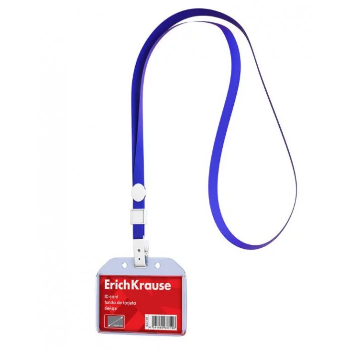 Бейдж горизонтальный в комплекте с лентой ErichKrause размер вставки 85х54 мм, прозрачный, цвет ленты синий 63719
