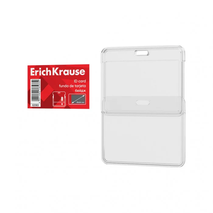 Бейдж горизонтальный в комплекте с лентой ErichKrause слайдер, размер вставки 85х54 мм, прозрачный, цвет ленты ассорти, 62083