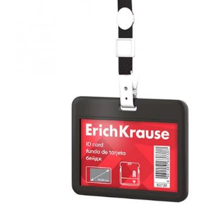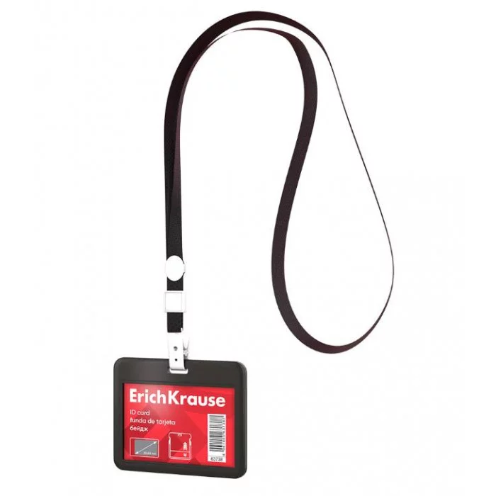 Бейдж горизонтальный в комплекте с лентой ErichKrause слайдер, твердый пластик ABC, размер вставки 85х54 мм, черный 63738