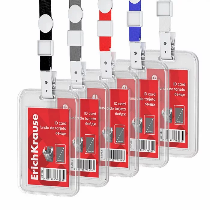 Бейдж вертикальный в комплекте с лентой ErichKrause книжка, размер вставки 54х85 мм, прозрачный, цвет ленты ассорти, 62082