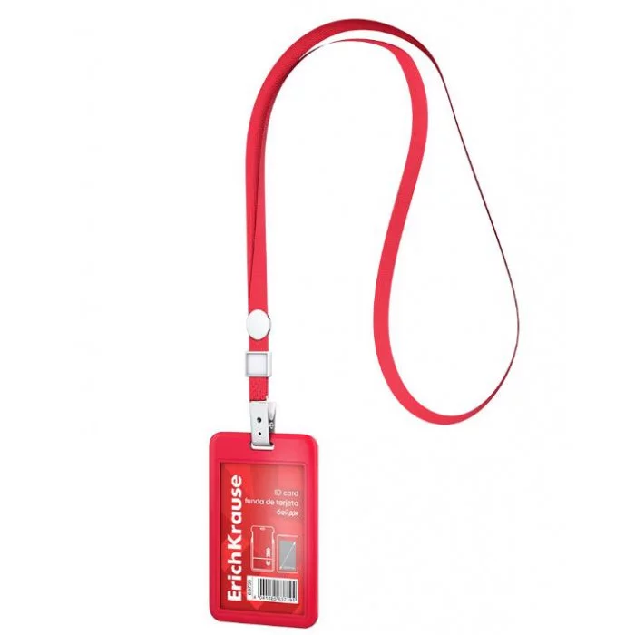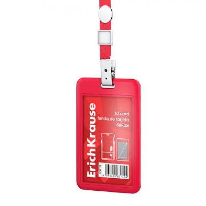 Бейдж вертикальный в комплекте с лентой ErichKrause слайдер, твердый пластик ABC , размер вставки 54х85 мм, красный 1шт 63739