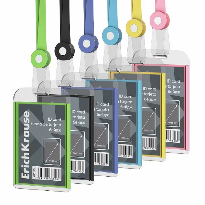 Бейдж вертикальный в комплекте с силиконовой лентой ErichKrause акриловый размер вставки 54х85 мм, ассорти, 62093