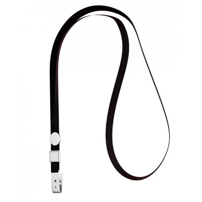 Лента для бейджа черного цвета. Лента изготовлена из полиэстера, имеет пластиковый зажим. Ширина ленты составляет 10 мм.