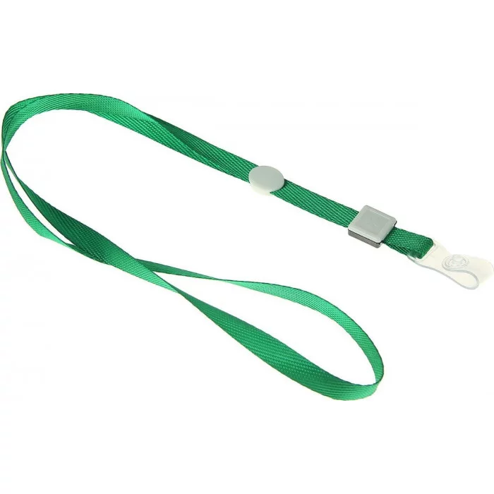 Лента для бейджа ширина-10мм, длина-80см плотная с бегунком силиконовым зажимом ЗЕЛЕНАЯ 1505485