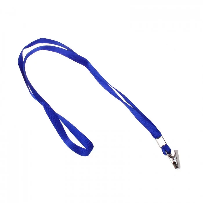 Лента для бейджа ширина-9-10мм,длина-80см с металл прищепкой СИНЯЯ 593864