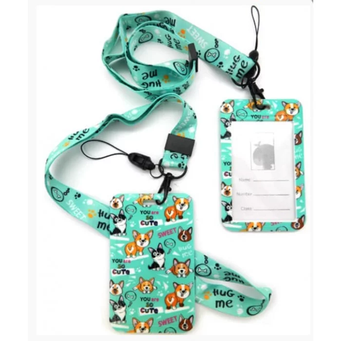 Обложка для проездного билета CY-65 салатовая Корги 1 карман, А7, пластик, с лентой 326630