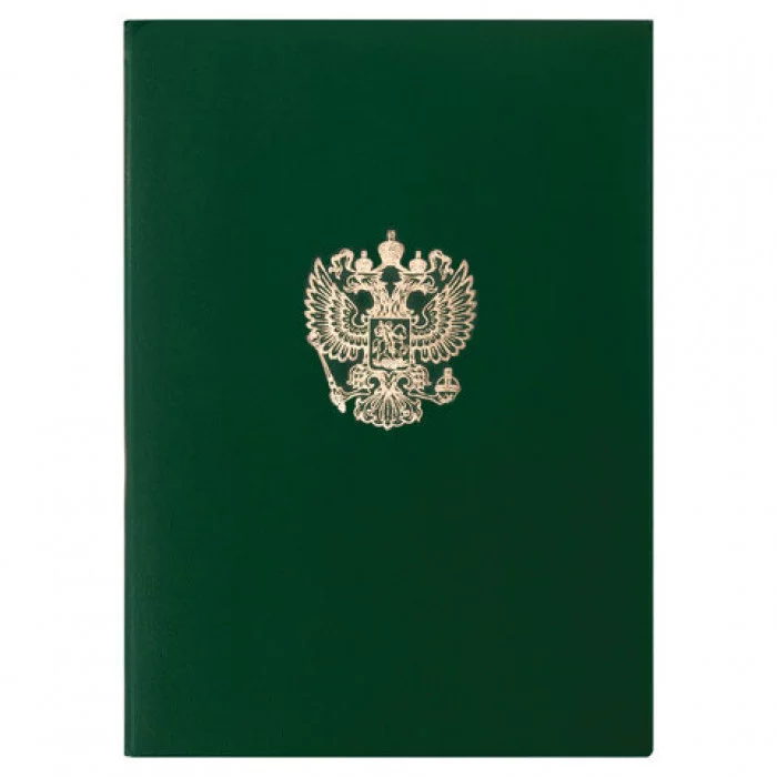 Папка адресная бумвинил с гербом России, формат А4, зеленая, индивидуальная упаковка, STAFF "Basic", 129581