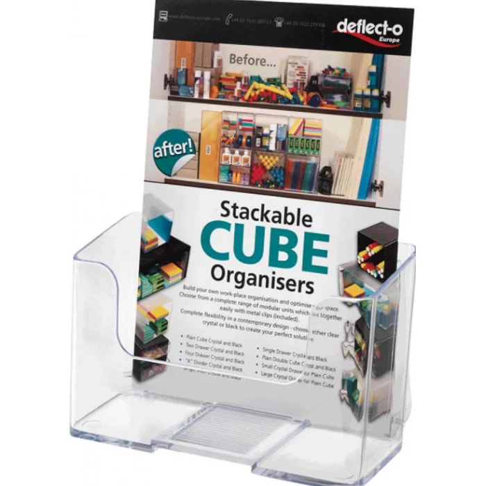 исплей для брошюр Deflecto используется для размещения большого количества рекламных листовок, брошюр, каталогов, буклетов и т.п. Угол наклона обеспечивает устойчивость конструкции. Высокая задняя стенка.