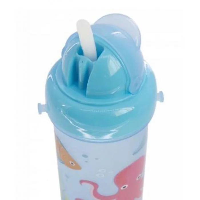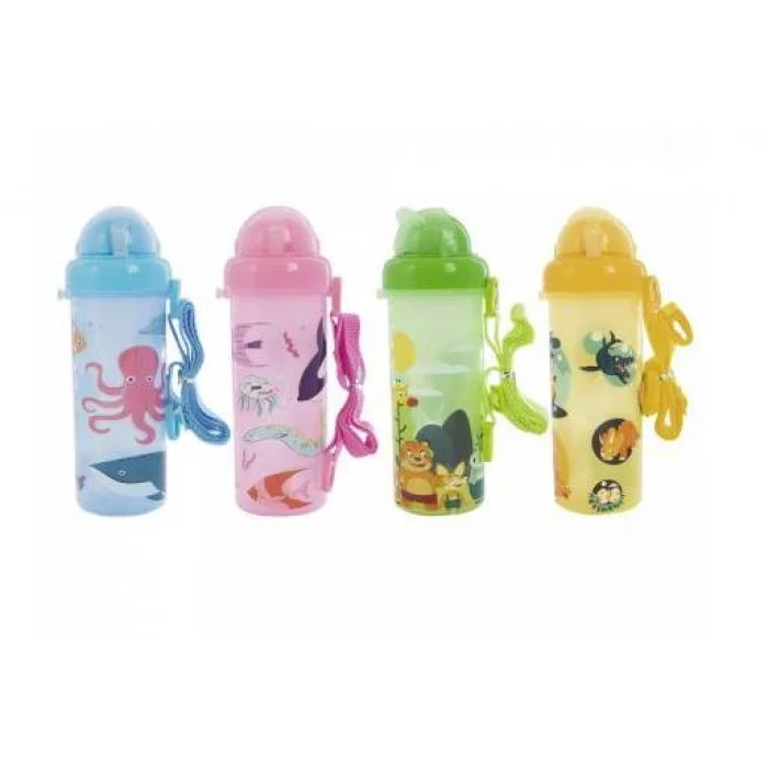 Бутылка для воды Alingar, детская, пластик, 500 мл, силиконовая трубочка, уплотнитель, карабин, ремешок, ассорти, "Удивительный мир" AL10488
