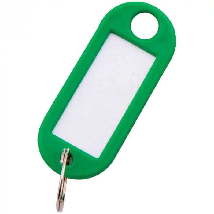 Брелоки для ключей с информационным окном и бумажной вставкой для пометок. Размер брелока 52*22 мм, размер окна 32х14мм. Материал -мягкий пластик. Цвет зеленый. Упаковка по 10 шт.