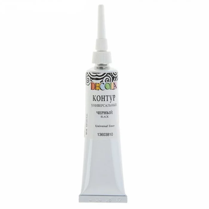 Один контур поможет создать устойчивые к смыванию узоры и рисунки на многих поверхностях: стекле, фарфоре, металле, пластике и пр. Отличительная особенность универсального контура Decola - он дает небольшую усадку, оставляя рельефный узор. Период полного высыхания от 12 до 24 часов, в зависимости от толщины нанесения контура.