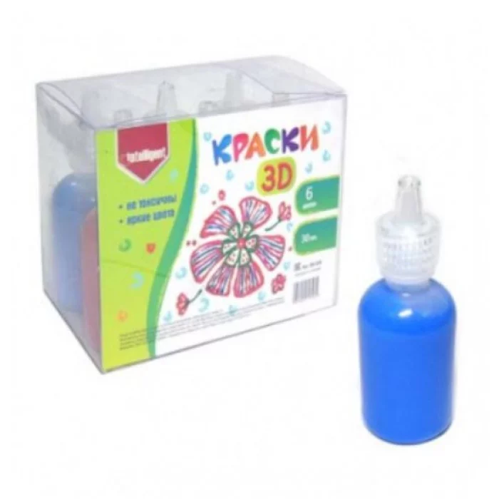 Краска 3D 6цв. INTELLIGENT BS-326 тюбики с острым носиком, в упак ПВХ 309067