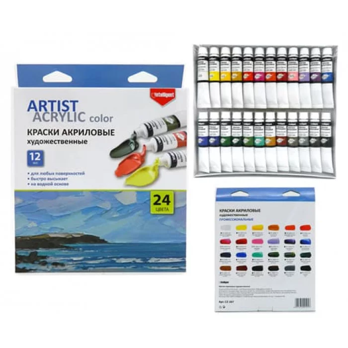 Краска акрил. 24 цв. INTELLIGENT CZ-207 в пластиковой тубе по 12мл, в картонной коробке 326412