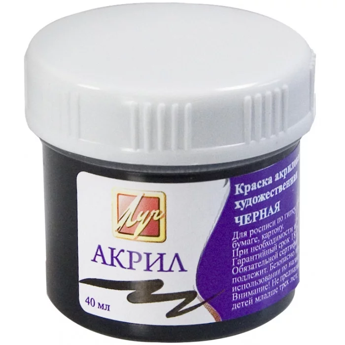 Краска акриловая ХУДОЖЕСТВЕННАЯ 40 мл черная Луч 107807