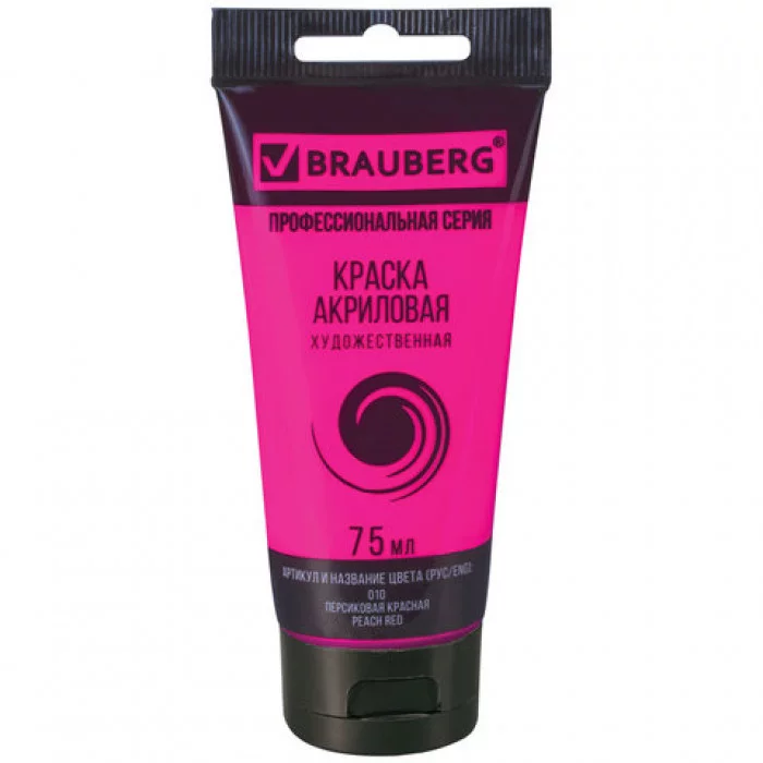 Краска акриловая художественная BRAUBERG ART CLASSIC , туба 75 мл, персиковая красная, 191087