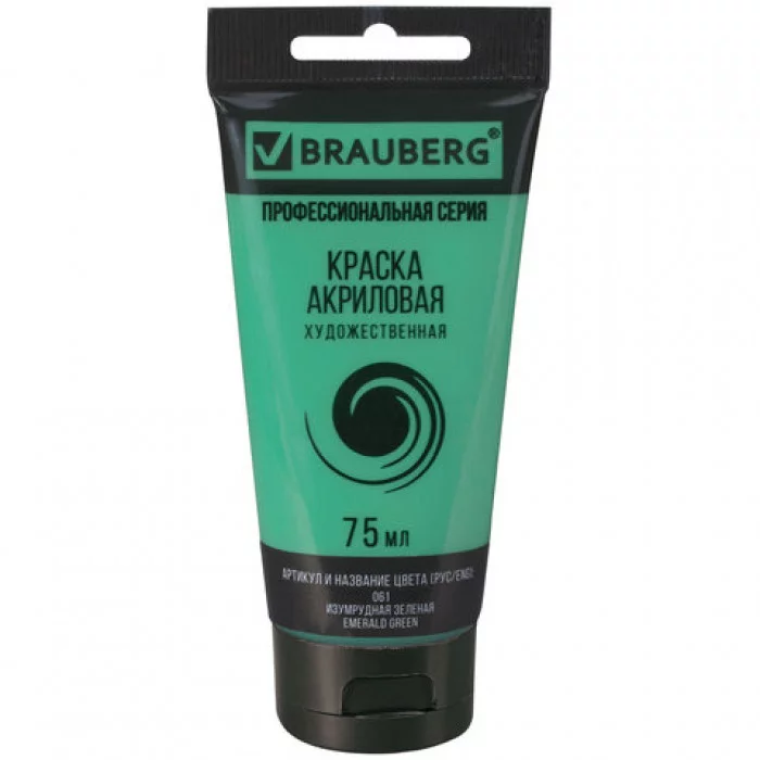 Краска акриловая художественная BRAUBERG ART CLASSIC, туба 75мл, ИЗУМРУДНАЯ ЗЕЛЕНАЯ, 191102