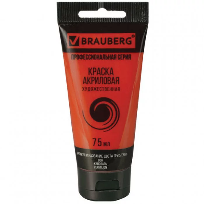 Краска акриловая художественная BRAUBERG ART CLASSIC, туба 75мл, КИНОВАРЬ, 191081