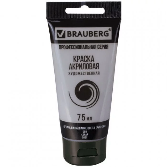 Краска акриловая художественная BRAUBERG ART CLASSIC, туба 75мл, СЕРАЯ, 191115
