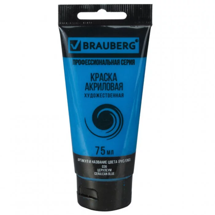 Краска акриловая художественная BRAUBERG ART CLASSIC, туба 75мл, ЦЕРУЛЕУМ, 191093