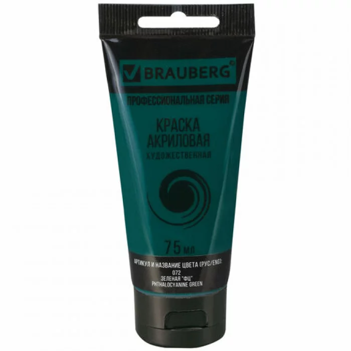 Краска акриловая художественная BRAUBERG ART CLASSIC, туба 75мл, ЗЕЛЕНАЯ ФЦ , 191108