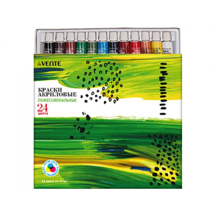 Краски акриловые профессиональные художественные "deVENTE" 24 цвета по 12 мл, в алюминиевых тубах, в картонной коробке