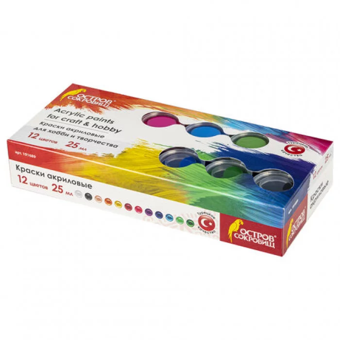 Краски акриловые для рисования и хобби ОСТРОВ СОКРОВИЩ 12 цветов по 25 мл, 191689