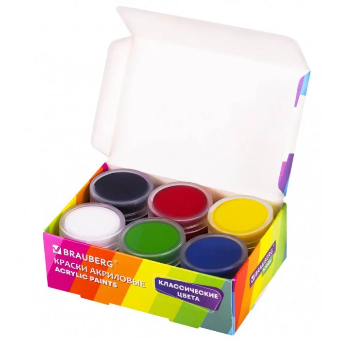 Краски акриловые BRAUBERG HOBBY – универсальный рабочий материал для широкой гаммы увлечений. Подходят для живописных и декоративно-оформительских работ на большинстве поверхностей (бумага, картон, грунтованный холст, дерево, стекло, керамика, камень).