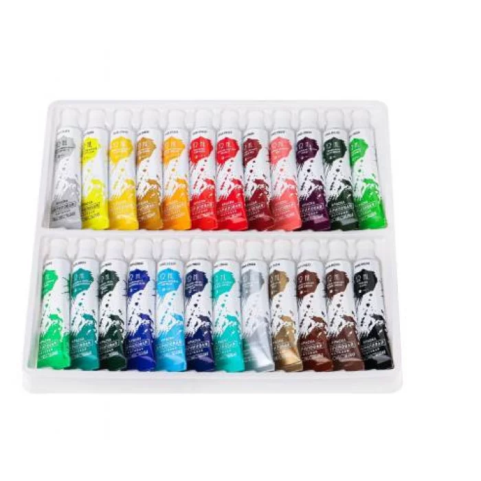 Краски акриловые художественные матовые (АК-9496) набор 24 цветов, 12 мл, в алюм.тубе АК-9496