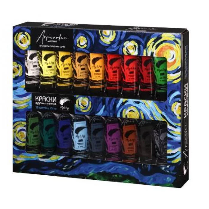 Краски акриловые художественные матовые проф.серия набор 18цв 75мл TM"FlyWay" АК-9500
