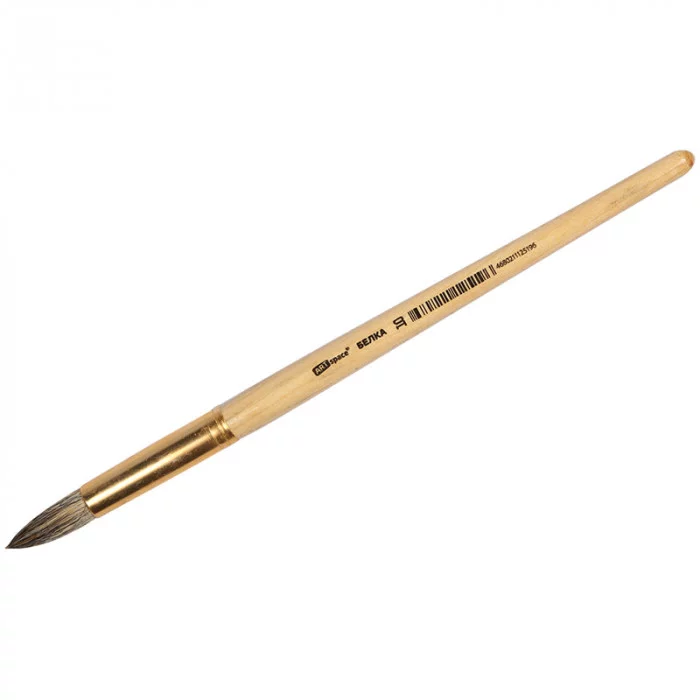 Художественные кисти ArtSpace изготовлены из натурального волоса белки.Подходят для начальных уроков рисования. Кисть круглой формы с короткой ручкой из дерева предназначены для работы с акварельными красками. Эластичный, мягкий волос прекрасно сохраняет форму пучка. Специальные технологии обработки повышают его упругость. Кисть позволяет создавать точнкие линии благодаря способности волосков плотно прилегать друг к другу во влажной среде. Волос: белка; Номер: 10; Форма кисти: круглая; Тип ручки: короткая; Материал ручки: дерево.