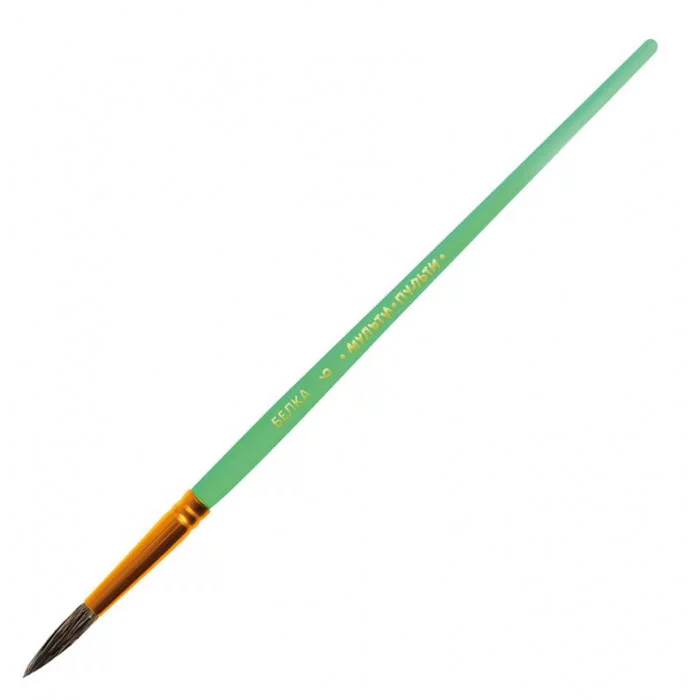 Кисть круглая № 6 «Мульти-Пульти» предназначена для детей с начальным и средним уровнем подготовки. Используемый натуральный волос белки обладает капиллярным эффектом, поэтому кисть можно использовать в том числе для акварельных красок. Форма обоймы − круглая.