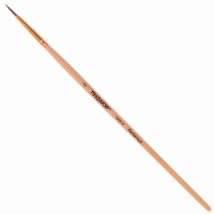 Кисть ПИФАГОР № 2 подходит для работы с акварелью, гуашью, тушью, а также для прорисовывания различных деталей рисунка. Снабжена защитным пластиковым колпачком. Кисть из волоса белки отлично впитывает и отдает краску, хорошо держит форму, долговечна и надежна. Кисть № 2 позволит комфортно прорисовывать мелкие детали. Деревянную лакированную рукоятку кисти удобно держать в руке. Количество кистей в наборе: 1 шт.. Ворс: белка. Номер кисти: 2. Тип кисти: круглая. Ручка: укороченная. Упаковка: нет Бренд - ПИФАГОР. Производитель - Китай. Артикул - 200816. Штрихкод - 4606224252155