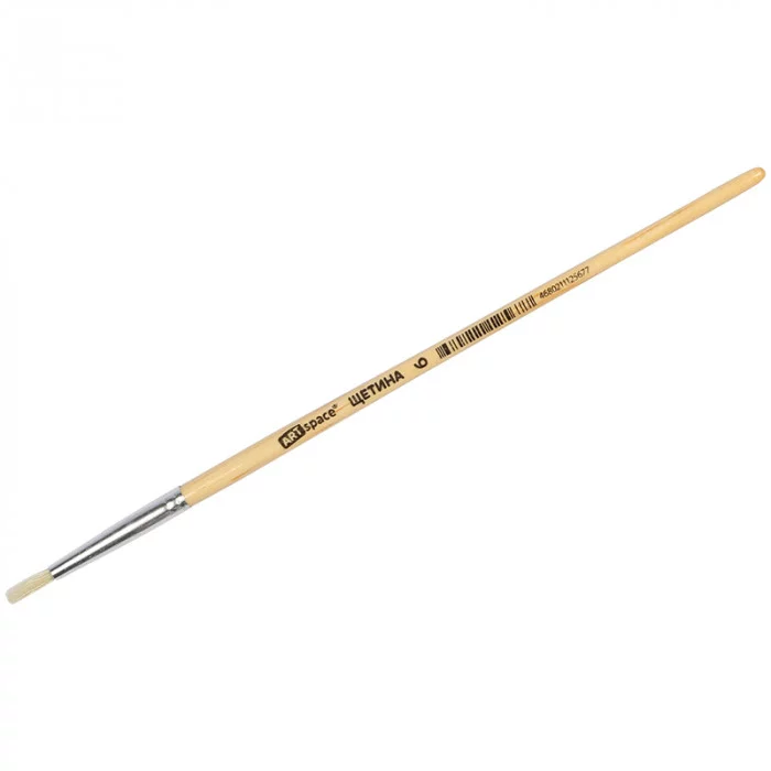 Художественные кисти ArtSpace изготовлены из качественной щетины. Изделие даже после продолжительного использования не теряет форму. Ещё одним важным свойством является расщеплённый кончик, который способствует хорошей наполняемости кисти и ровному нанесению краски. Кисть круглой формы с короткой ручкой из дерева предназначена для работ с «тяжёлыми красками»: маслом, акрилом, темперой, гуашью. Натуральные кисти из щетины - отличный инструмент как для детского и школьного творчества, так для хобби и профессиональной живописи. Ручка кисти изготовлена из берёзы и покрыта глянцевым лаком. Волос: щетина; Номер: 6; Форма кисти: круглая; Тип ручки: короткая; Материал ручки: дерево.