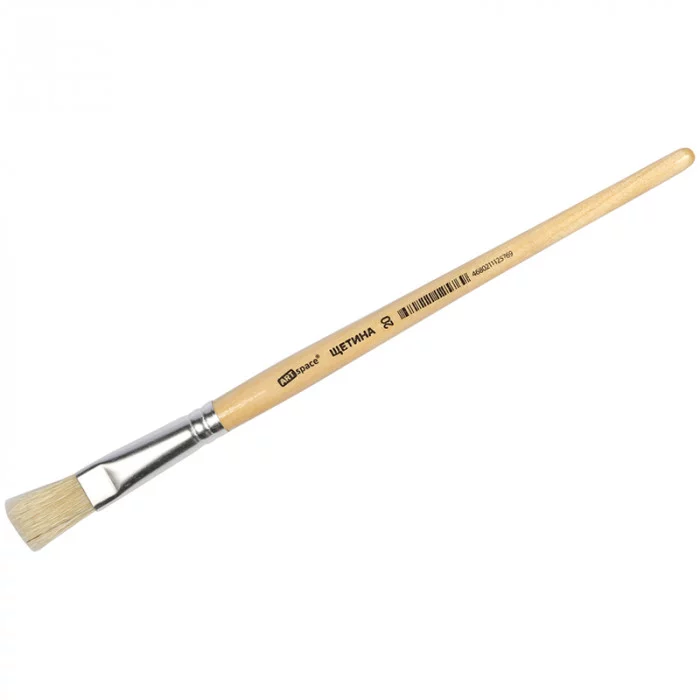 Художественные кисти ArtSpace изготовлены из качественной щетины. Изделие даже после продолжительного использования не теряет форму. Ещё одним важным свойством является расщеплённый кончик, который способствует хорошей наполняемости кисти и ровному нанесению краски. Кисть плоской формы с короткой ручкой из дерева предназначена для работ с «тяжёлыми красками»: маслом, акрилом, темперой, гуашью. Натуральные кисти из щетины - отличный инструмент как для детского и школьного творчества, так для хобби и профессиональной живописи. Ручка кисти изготовлена из берёзы и покрыта глянцевым лаком. Волос: щетина; Номер: 20; Форма кисти: плоская; Тип ручки: короткая; Материал ручки: дерево.