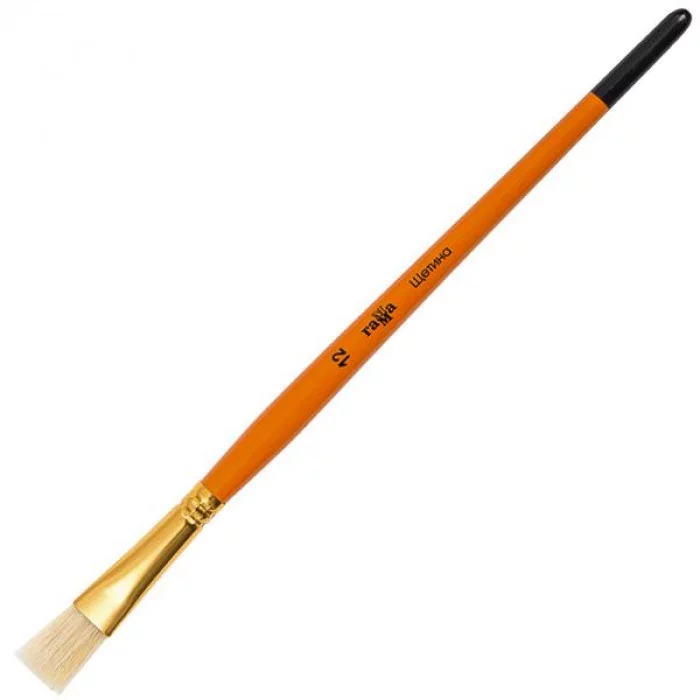 Кисти ГАММА из волоса щетины серии «Классическая» ценятся своей упругостью и жёсткостью. Ещё одним важным свойством является расщеплённый кончик, который способствует хорошей наполняемости кисти и ровному нанесению краски. Изделия предназначены для работ с «тяжёлыми красками»: маслом, акрилом, темперой, гуашью. Натуральные кисти из щетины – отличный инструмент как для детского и школьного творчества, так для хобби и профессиональной живописи. Ручка кисти изготовлена из берёзы и покрыта глянцевым лаком. Цельнометаллическая никелированная бесшовная обойма обеспечивает надёжное соединение ручки и волосяного пучка. Номер: 12; Форма кисти: плоская; Волос: щетина; Тип ручки: короткая.