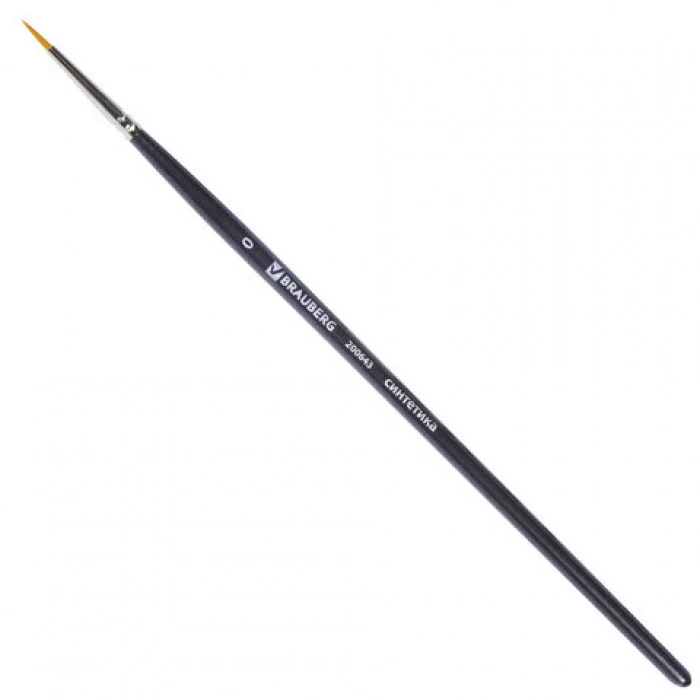 Художественная профессиональная синтетическая кисть BRAUBERG ART "CLASSIC" № 0 предназначена для работ густыми красками: гуашь, акрил, масло, темпера. Идеальна для водорастворимых масляных красок. Изготовлена с применением высококачественной южно-корейской синтетики. Синтетика превосходит щетину в легкости очистки и износостойкости, а упругость ворса и прекрасные впитывающие свойства пучка обеспечивают идеальное сохранение формы мазка.Укороченная ручка из древесины покрыта лаком, что защищает ее от воздействия красок и влаги.Форма пучка - круглая, ширина кисти - 1 мм.Упаковка - пакет с европодвесом и картонной подложкой. Номер кисти: 0. Тип кисти: круглая. Серия: CLASSIC Synthetic. Ручка: укороченная. Материал: жесткая синтетика. Диаметр (ширина) кисти: 1 мм. Выход волоса: 8 мм. Упаковка: пакет с европодвесом и картонной подложкой Бренд - BRAUBERG ART. Производитель - Китай. Артикул - 200643. Штрихкод - 4606224178745