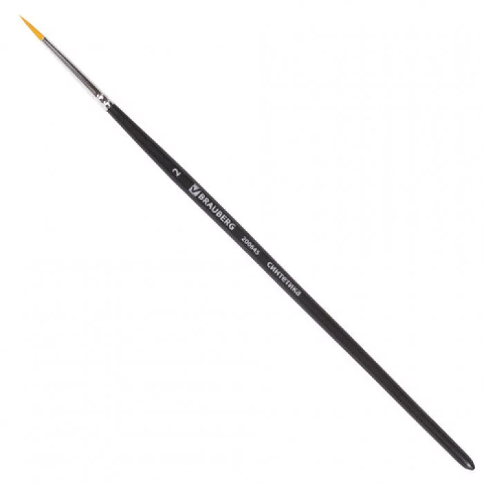 Художественная профессиональная синтетическая кисть BRAUBERG ART "CLASSIC" № 2 предназначена для работ густыми красками: гуашь, акрил, масло, темпера. Идеальна для водорастворимых масляных красок. Изготовлена с применением высококачественной южно-корейской синтетики. Синтетика превосходит щетину в легкости очистки и износостойкости, а упругость ворса и прекрасные впитывающие свойства пучка обеспечивают идеальное сохранение формы мазка.Укороченная ручка из древесины покрыта лаком, что защищает ее от воздействия красок и влаги.Форма пучка - круглая, номер кисти соотвествует реальной ширине пучка в миллиметрах.Упаковка - пакет с европодвесом и картонной подложкой. Номер кисти: 2. Тип кисти: круглая. Серия: CLASSIC Synthetic. Ручка: укороченная. Материал: жесткая синтетика. Диаметр (ширина) кисти: 2 мм. Выход волоса: 10 мм. Упаковка: пакет с европодвесом и картонной подложкой Бренд - BRAUBERG ART. Производитель - Китай. Артикул - 200645. Штрихкод - 4606224178769