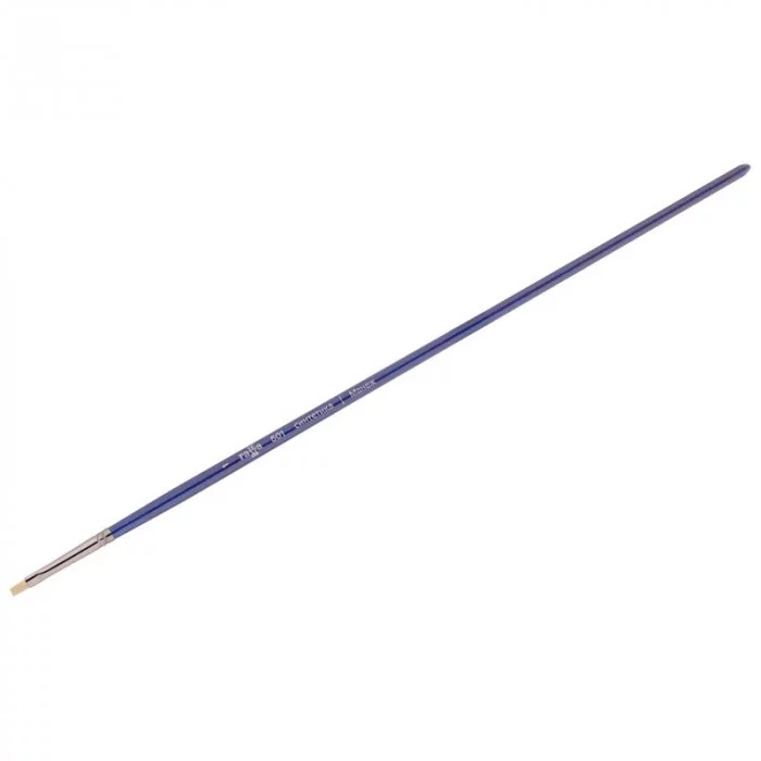 Художественные кисти ГАММА серии «Манеж» изготовлены из высококачественного синтетического волоса, имитирующего натуральный ворс щетины. Данные кисти предназначены для работы с масляными, акриловыми, гуашевыми красками, медиумами, лаками и пастами. Удобны для нанесения структурных мазков. Форма пучка круглых кистей в виде конуса с идеальным зауженным кончиком позволяет писать крупными, плотными мазками, а также вести тонкую и изящную линию. Длинная глянцевая ручка, окольцованная никелированной обоймой, даёт возможность лучше контролировать работу кисти. Белый цвет волоса позволяет более точно отслеживать чистоту оттенка краски, что увеличивает качество работы с точки зрения колористики, а новый подход к технологии создания синтетики увеличил эластичность и упругость материала. Данные кисти являются полноценной заменой кистям из натуральной щетины. Длинная ручка кисти покрыта глянцевым лаком цвета ультрамарин. Кисть имеет никелированную бесшовную обойму и цветную лакированную ручку. Номер: 1; Форма кисти: плос