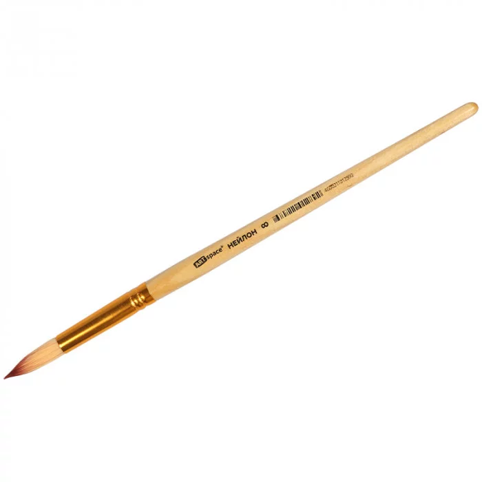 Художественная кисть ArtSpace из нейлона - это недорогой вариант для школьников, где редко пользуются акрилом и маслом, чаще гуашью и акварелью. Она идеальна для начинающих художников, поэтому их часто используют в детских образовательных учреждениях. Кисть круглой формы с короткой ручкой из дерева также подходит для малышей. Волос: нейлон; Номер: 8; Форма кисти: круглая; Тип ручки: короткая; Материал ручки: дерево.