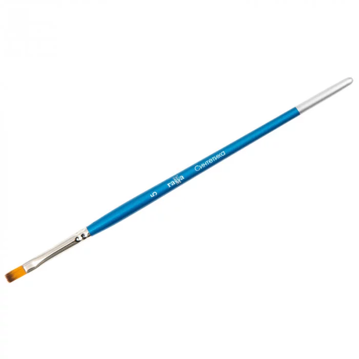 Кисти ГАММА из синтетического волоса серии «Классическая» являются аналогом кистей из натурального колонка и белки по параметрам жёсткости и эластичности. Синтетический волос на основе сложных полиэфирных волокон имеет гладкую структуру и обладает капиллярным эффектом, что позволяет использовать такие кисти при работе с акварелью. Ручка кисти изготовлена из берёзы и покрыта глянцевым лаком. Цельнометаллическая никелированная бесшовная обойма обеспечивает надёжное соединение ручки и волосяного пучка. Номер: 05; Форма кисти: плоская; Волос: синтетика; Тип ручки: короткая.
