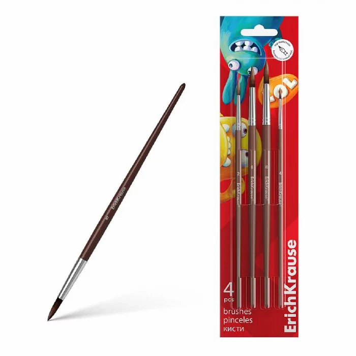 Кисти ErichKrause Jolly Friends для акварели и гуаши, пони, 4 штуки (в блистере) 61856